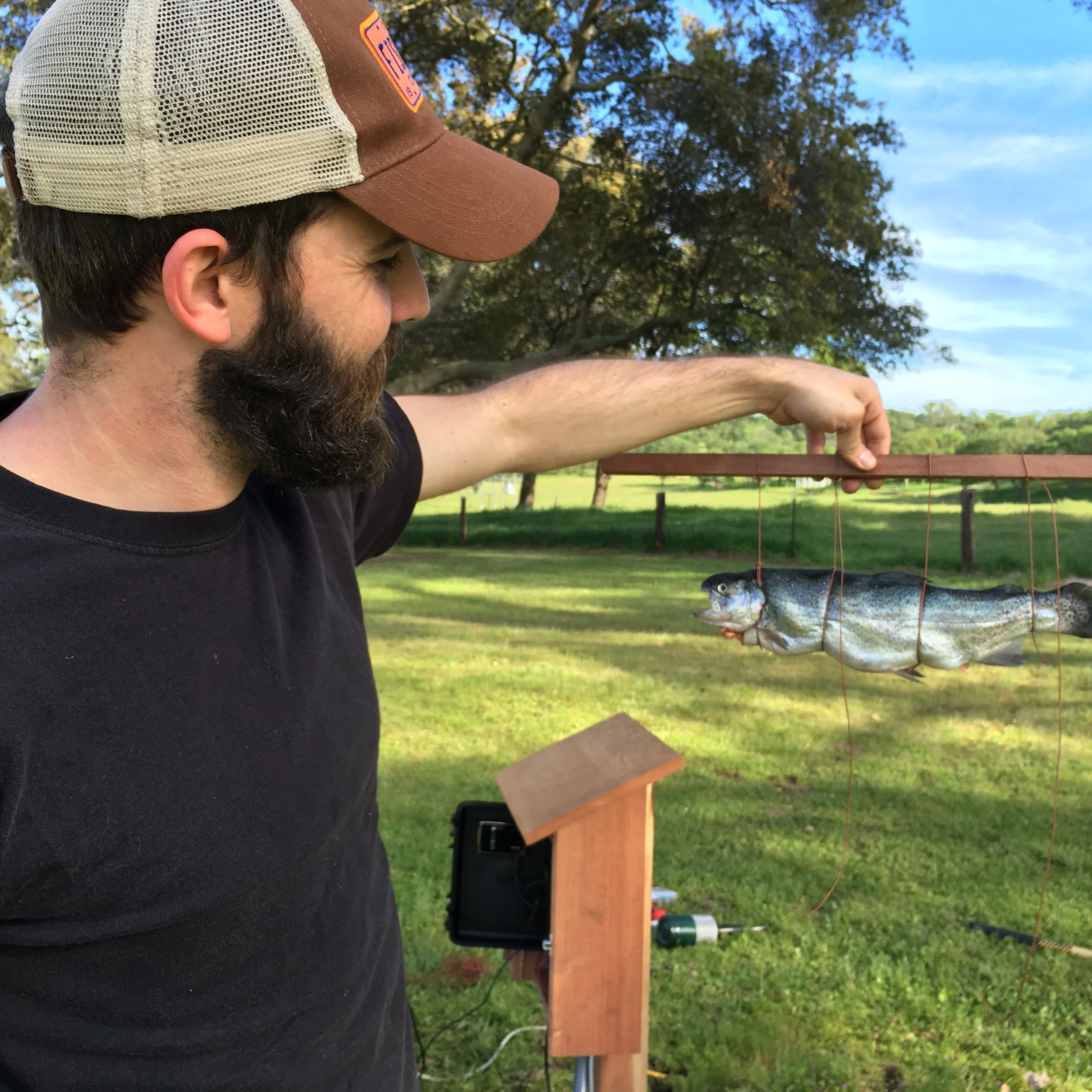 Burial Ground, installed at Oakwilde Sculpture Park near Stockton, CA, was the counterpart to an earlier work titled Spawning Ground. With Spawning Ground, the viewer was transported into the spawning bed of a salmon, with the work focusing on reproduction and new life. With Burial Ground Peterson buried a trout carcass in a Redwood box with a camera which documented the decay of the trout over a period of six months, serving as a meditation on the final stages of a life cycle. The viewer had the opportunity to view the process by scanning a QR code and watching on their smart phone. The artist anticipated that the fish would completely decay, but instead a mold colony grew and died, creating a new life cycle within the trout’s final stages, and mummifying the trout’s body in the process. This unexpected preservation reanimated the imagery for Peterson and sparked a whole new path of inquiry which the artist followed for the next seven years.